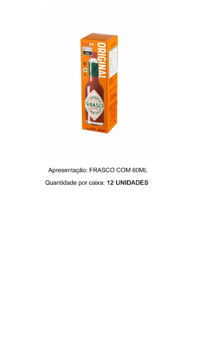 MOLHO PIMENTA TABASCO ORIGINAL SAUCE 60ML