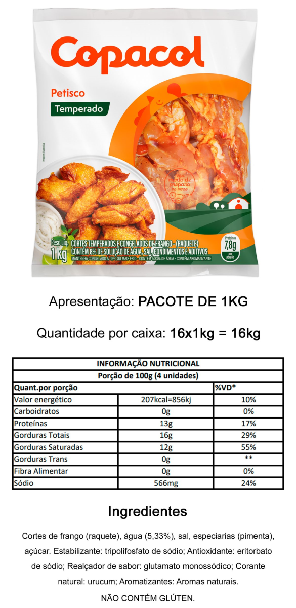 PETISCO DE FRANGO TEMPERADO (RAQUETE) PCT 1KG CX 16KG HTTPS://WWW.COPACOL.COM.BR/