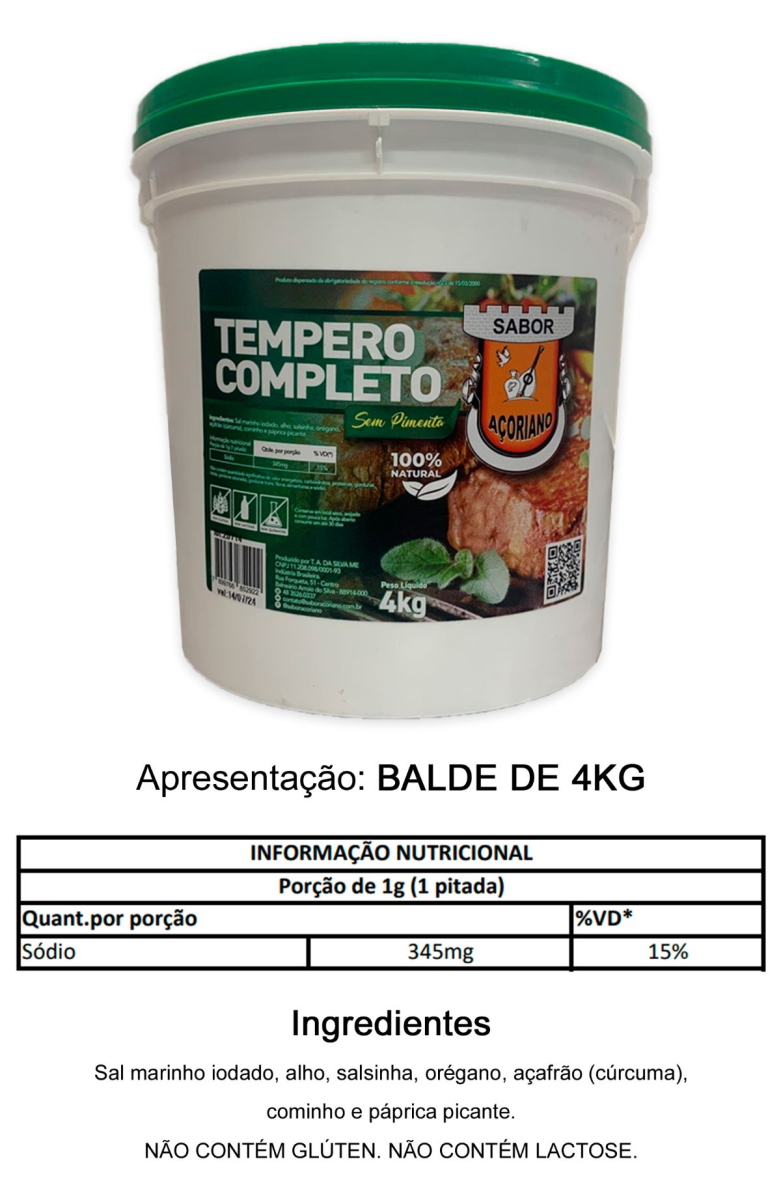 TEMPERO COMPLETO S/ PIMENTA AÇORIANO 4KG