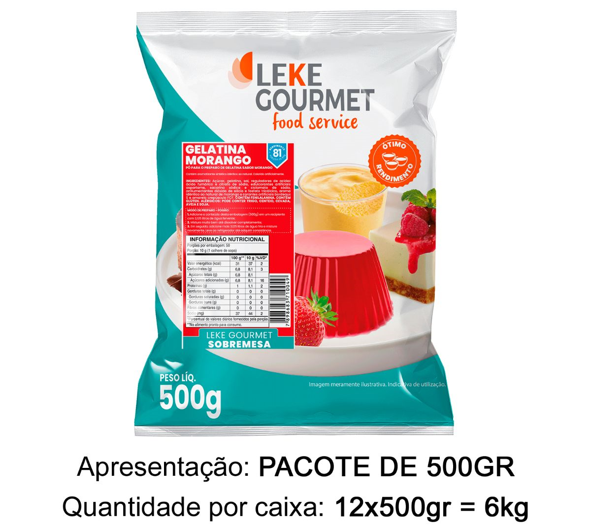 GELATINA PÓ MORANGO LEKE GOURMET 500G