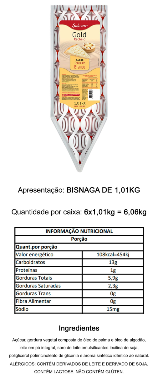 *RECHEIO FORNEAVEL CHOCOLATE BRANCO SALWARE GOLD 1,01KG