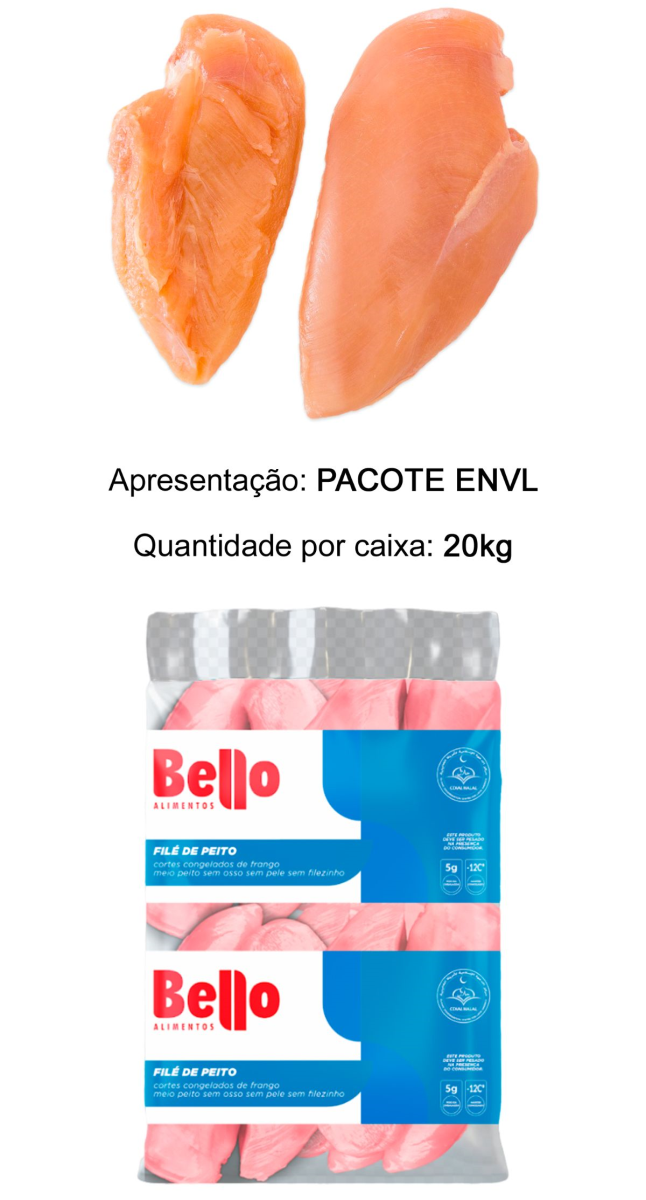 FILÉ DE PEITO METADE S/SASSAMI ENVL CX 20KG - BELLO